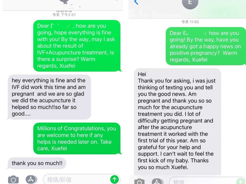 Acupuncture has not yet been widely accepted and applied in many countries and areas although it has lots of advantages on preventing and treating numerous diseases, for instance, acupuncture as a treatment for infertility shows great results both in men and women. Acupuncture can be considered as successful treatment in restoring fertility in the patients, by improving the sperm quality and ovaries function and balancing the endocrine system and hormones. Especially in combination with Tuina massage and fire-cupping therapies, Dr. Xuefei Wu has helped a lot of men and women, either pure natural way, or increasing the successful rate of IVF, both give excellent results.
